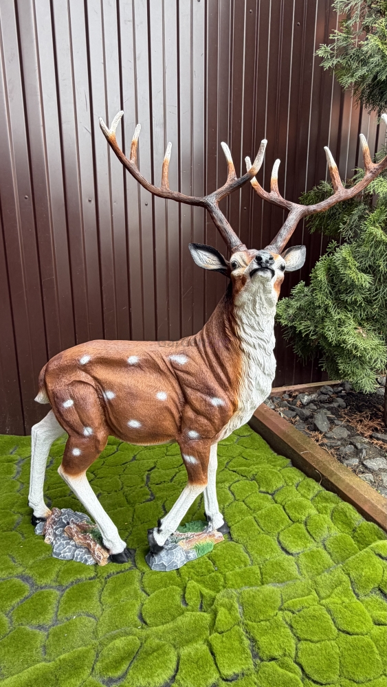 П-048 ( Олень с большими рогами фигура из полистоуна H-см L- см )