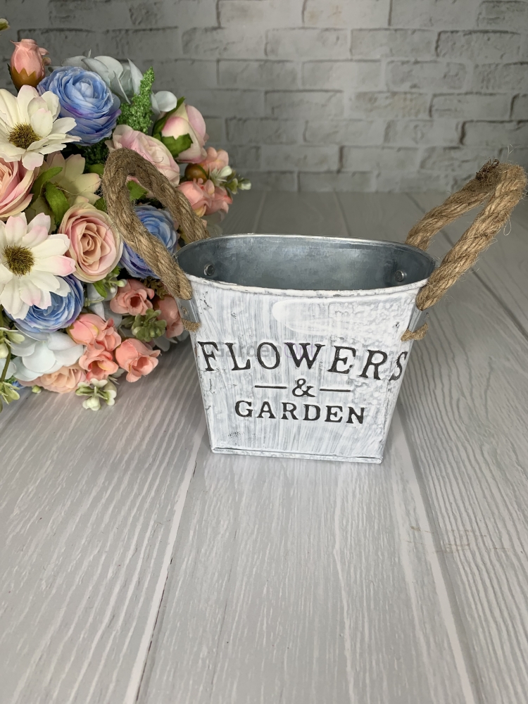 В-009 ( Кашпо металл ручки из веревки H-10 см.L-12 см.)